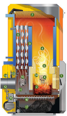 Esta caldera es un aparato con la electrónica de la más elevada tecnología; es el BMW de las calderas de biomasa, con unos rendimientos de hasta el 94% -frente a un 50% de las calderas convencionales-, lo que eleva el confort, dado que no es necesario estar pendiente de la alimentación de combustible, y disminuyendo las demanda del mismo, con el consiguiente ahorro económico.